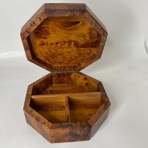 Moroccan Thuya Burl Wood Octagonal Jewelry Box Burl Wooden Inlay Trinket Box