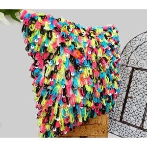 Moroccan Wedding Blanket Pillow Colorful Sequins, Boho Cushion Cover 03YL0452