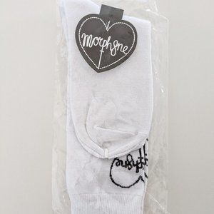 Morph8ne Goth Punk School Girl Heart White Logo High Knee Socks