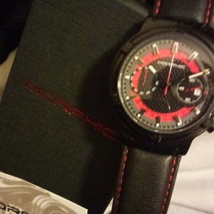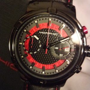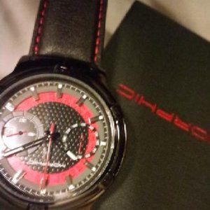 316L Surgical-Quality Stainless Steel Case Accurate Japanese Quartz Movement Full-Function Chronograph Non-Glare Scratch-Resistant Mineral Crystal Logo-Engraved Stainless Steel Caseback Genuine Leather Strap Logo-Engraved Stainless Steel Clasp Luminous Hands Luminous Markers Date Indicator 45mm Case Diameter 5 ATM Water Resistance