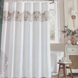 William Morris & Co Embroidered Fabric Shower Curtain Strawberry Thief White & Beige