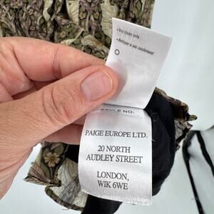 Stunning and rare Morris & Co. x PAIGE collaboration Victoria Dress, featuring an intricate heritage-inspired floral print drawn from William Morris’ iconic 19th-century designs. Crafted from a flowy, semi-sheer fabric with a detachable slip lining, button front, and tie-neck detail for a romantic vintage look.