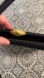 Satin material. Gold tone metal clasp with rhinestones. Clasp works, no stones missing.