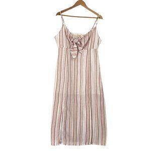 MorrisDay The Label L Pink Striped Midi Dress Spaghetti Strap Keyhole Tie Bust