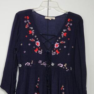 Morrisday The Label Embroidered Dress Size L Navy Blue