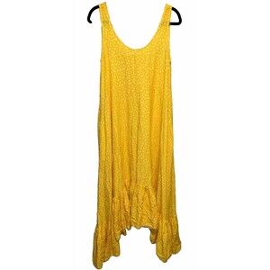 Morrison Linen Maxi Dress Butter Yellow Polka Dots Oversized S Pocket Flowy Boho