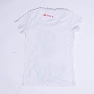 I bought this at the Morrissey tour a few years ago. Size medium: 36" bust, 25" length