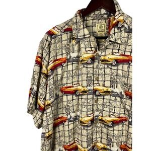 Morro Bay Hawaiian Shirt Medium Button Down Mens Hot Rod Cars Tropical Rayon