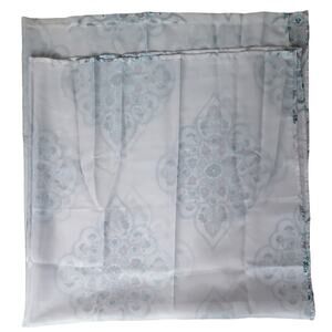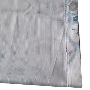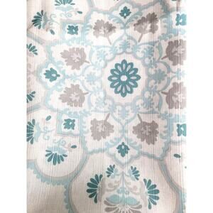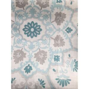 Elevate your bathroom decor with this gently used, pre-owned polyester fabric shower curtain featuring an exquisite Moroccan-style design adorned with beautiful flowers. The combination of light teal blue, dark teal blue, dark gray, and light gray hues creates a visually stunning and sophisticated look. Despite being used, this shower curtain is in excellent condition, having been meticulously maintained, laundered, and cared for. It was primarily used with a shower curtain liner in a guest bathroom, experiencing minimal usage. Rest assured, it comes from a smoke-free, pet-free home, ensuring cleanliness and freshness. Bring a touch of elegance and charm to your bathroom with this stylish shower curtain.