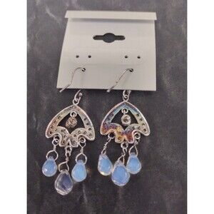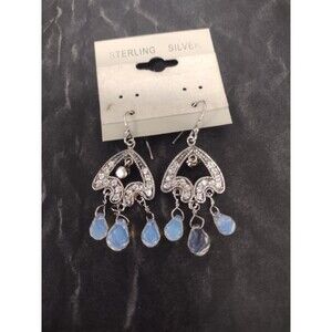 Morrocan Style Vintage Sterling Silver Crystal Dangling Blue Beaded Earrings