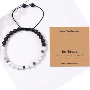 Morse Cod Bracelet "Be Brave" made with stones, metal and plastic on plastic coated threading.