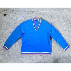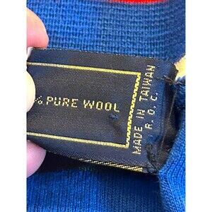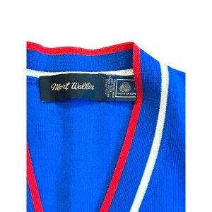 Mort Wallin Vintage 100% Wool V Neck Sweater Mens L Royal Blue Red White Preppy