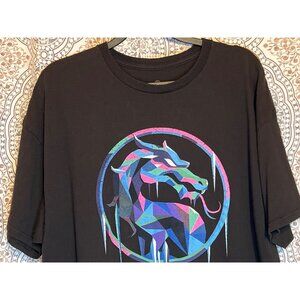 This Mortal Kombat T-shirt features a striking geometric dragon design, providing a bold and unique look. Crafted from cotton, it offers comfort and breathability, making it suitable for casual wear. Its black color enhances the vibrant graphic, ensuring you stand out. Available in XL, it's perfect for those who appreciate iconic gaming themes.