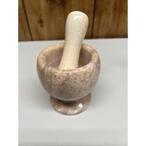 Mortar and Pestle Marble Stone Light Pink Yellow Pharmaceutical 4"