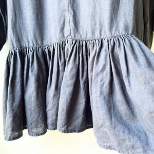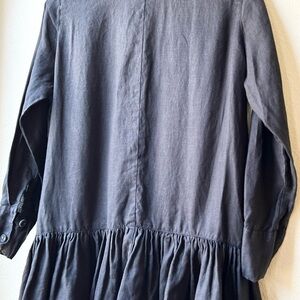 Morton Mac Black Linen Pleated Peplum Lotte Long Sleeve Shirt Dress OS