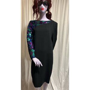 Vintage Dress by Seventh Avenue Fashion Designer Morton Myles (1929-2021) Black, Size 14 Sequin Black Party Formal. Amazing excellent Gently Pre-Worn Condition.
