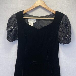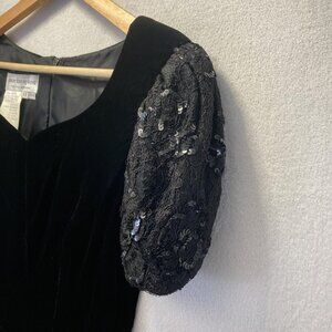 Morton Myles for The Warrens Velvet Dress Womens 12 Petite 12P Black Sequin Puff Sleeve