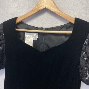 Morton Myles for The Warrens Velvet Dress Womens 12 Petite 12P Black Sequin Puff