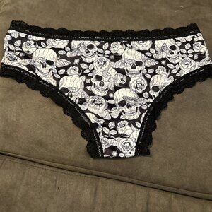 Morvia 3pk lace trim cheeky goth Emo panties M floral skull/stars Lingerie Bit