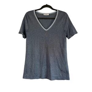 Mos Mosh Casio Blue Sparkly V-Neck Short Sleeve Top Sz M