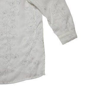 Mosaic Blouse Womens 16 White Floral Sheer Button Up Shirt Fairy Romantic Top