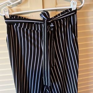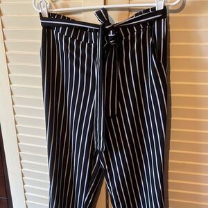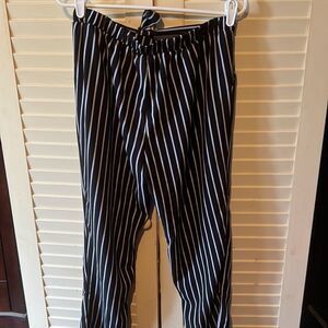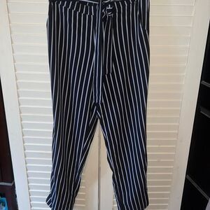 Mosaic and company striped casual pants, lightweight with a silky feel, has an elastic band at the back, does have pockets, ties in the front, size is extra large