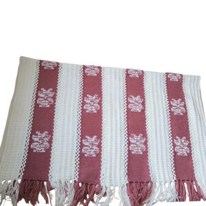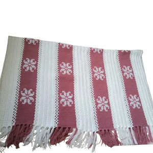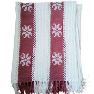Mosaic Crocheted Blanket Afghan Throw Dusty Pink White Snowflakes 60"×80" Fringe