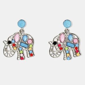 Mosaic Elephant Dangle Earrings Silver+Blue