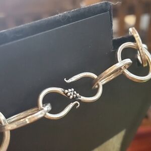 Mosaic Mother Of Pearl Beads Sterling Silver Circle Link Handcrafted Necklace