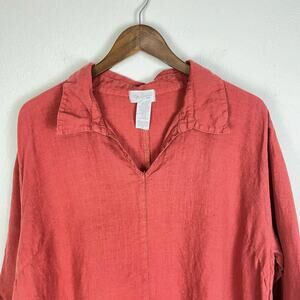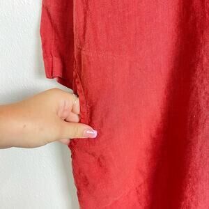 Mosaic USA | 100% Linen Terra Cotta Red Oversized 3/4 Sleeve Collared Tunic