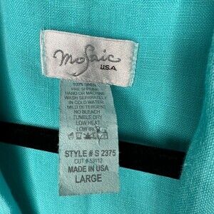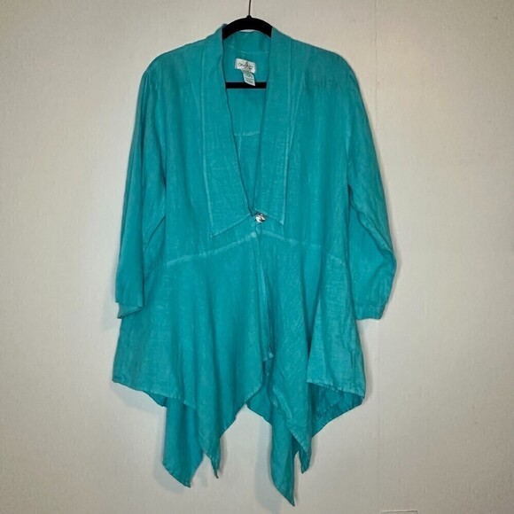 Mosaic USA Linen One Button Drape Cardigan Topper Teal Blue Lagenlook L