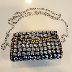 Mosaic bag made in India. Inside is deep with a chain strap. Can be worn as a clutch or crossbody.