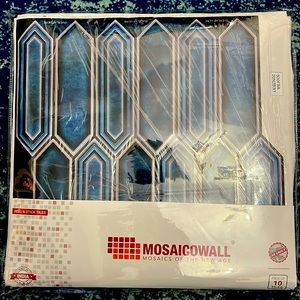 This listing is for 1 pack of 10 3D vinyl tiles. It's blue long hexagon tile with black "grout". 12.1 in x 11.81 in. Very easy to install, you might have to do a little more work if your surface is uneven and make sure to clean your surface before applying to make sure it sticks to the wall. I'm selling this pack because I ordered more than I needed.