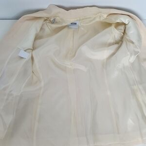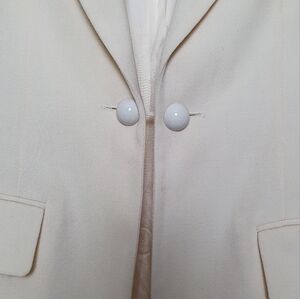 Features: 2 button closure, faux pockets, deep V-nevvk, lightly padded shoulders