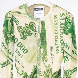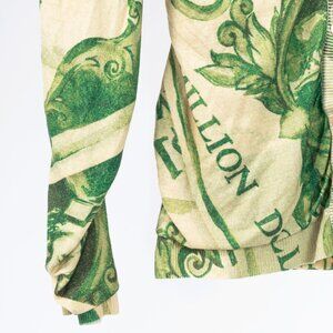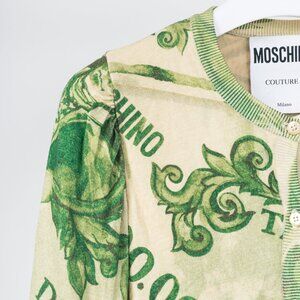Moschino AW/19 Green Wool Money-Print Ruched Cardigan