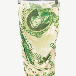 Moschino AW/19 Green Wool Money-Print Ruched Skirt