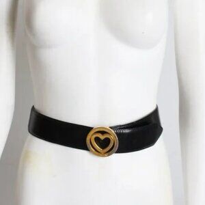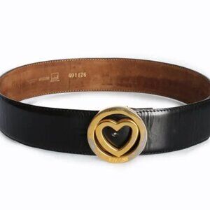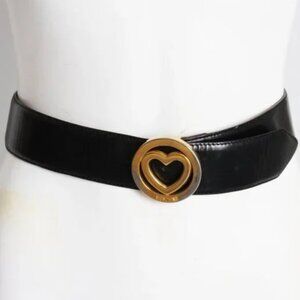 Moschino Belt Heart Buckle Black Leather Wide Vintage by Redwall Italy