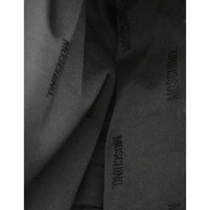 Black and multicolor woven fabric Moschino shoulder bag with silver-tone hardware, dual rolled black leather shoulder straps, black woven lining, single pocket at interior wall with zip closure and velcro closure at top. Frame hinge opening. Height: 9.5", Shoulder Strap Drop: 10", Depth: 1.75", Width: 17". Very Good. Condition, Slight wear at exterior.