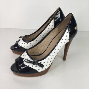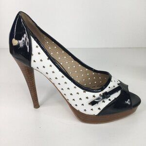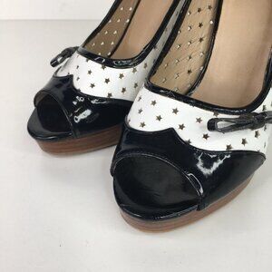 Moschino Black & White Open Toe Stars Heels Size 38 Pin Up Style