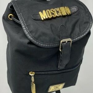 - Black Nylon, Leather and goldtone, logo'd hardware