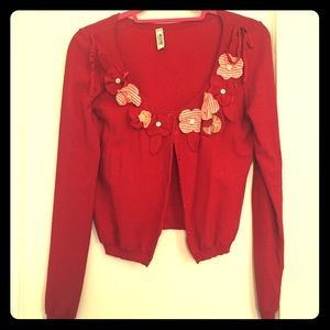 Moschino Cardigan with flower appliqué. Slightly cropped in length.