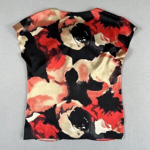 Moschino Cheap And Chic Silk Abstract Floral Red Key Hole Cap Sleeve Blouse 8