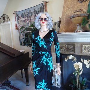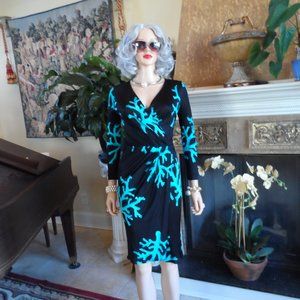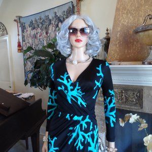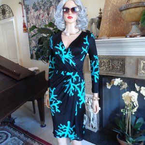 Moschino Cheap & Chic Black-Teal Silk Jersey Surplice Dress Size S