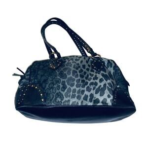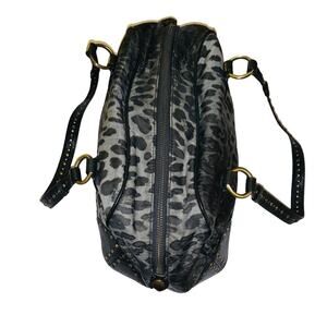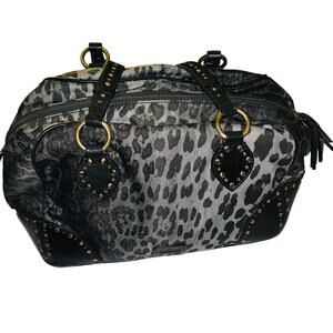 Moschino Cheap & Chic Gray Black Leopard Leather Studded Multicolor Nylon Bag
