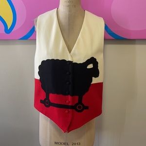 Show your sense of humor this fall wearing this vintage wool vest from Moschino Cheap and Chic with a big Sheep on the front! Pair with white long sleeve shirt and black skinny jeans for a finished look.