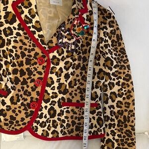 Moschino Cheap & Chic Leopard Print Blazer Jacket Red Trim Applique Size 14