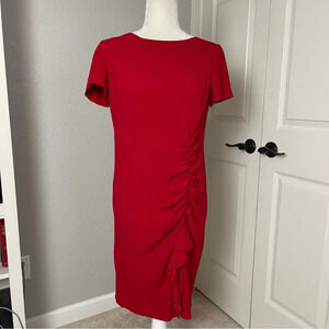 Moschino Cheap & Chic Red Ruched Sheath Dress With Ruffle Size 6