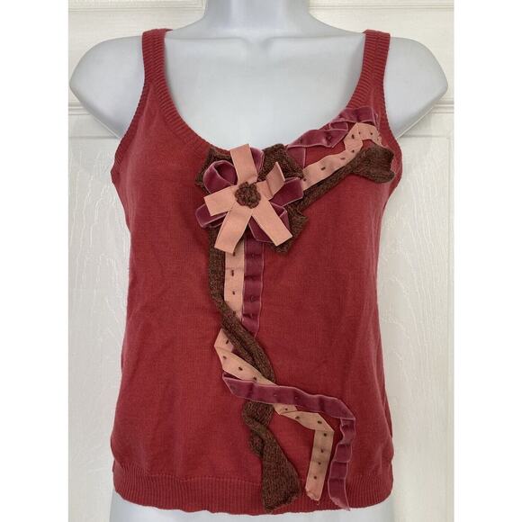 Moschino Cheap & Chic Wool Velvet Bow Motif Camisole Blouse Pink Size 8 READ
