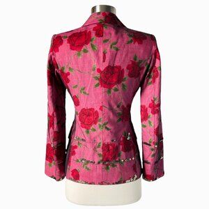 Keywords: Moschino blazer, Cheap and Chic, floral blazer, sequin blazer, statement jacket, tailored blazer, rose print jacket, evening jacket, Italian designer, vintage Moschino, bold print blazer, romantic style, special occasion jacket, Y2K designer