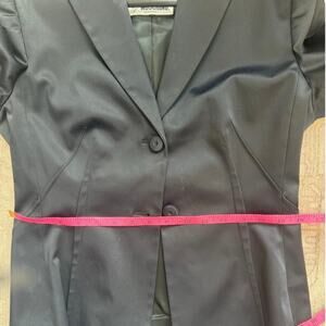 Moschino Cheap and Chic Vintage Black Satin Skirt Suit Set Size 10, measures a 6